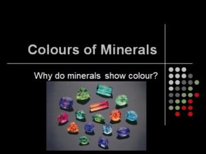 We will look into how we as humans perceive colour and the different categories of interactions leading to colour in a mineral.